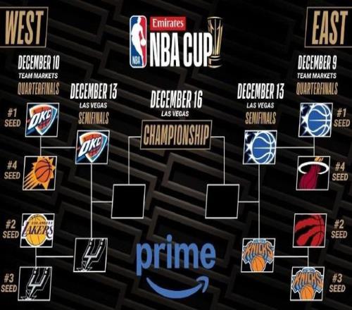 北京时间12月11日,NBA杯1/4决赛全部结束,雷霆49分优势狂胜残阵太阳,缺少文班亚马的马刺“爆冷”淘汰湖人拒绝被24分逆转,魔术16分逆转战胜热火,尼克斯轻取猛龙,晋级NBA杯的四强球队全部产生,分别是西部的雷霆和马刺,东部的魔术和尼克斯。NBA杯半决赛对阵出炉:西部雷霆vs马刺,东部尼克斯vs魔术,四强球队过往均没有夺得过NBA杯冠军,因而今年将诞生全新的NBA杯冠军。