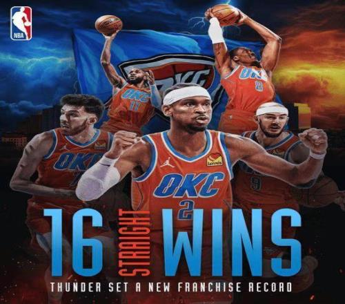 卫冕冠军雷霆展现出超强的统治力,他们在亚历山大复出三节轰下28+8数据引领下,一边倒碾压缺少布克与杰伦-格林的太阳,全场雷霆狂轰22记三分,且全队6人得分上双,最多时刻领先53分优势,最终以138-89狂胜太阳49分晋级。雷霆豪取16连胜创队史纪录,且前25场24胜1负追平宇宙勇并列历史第一。